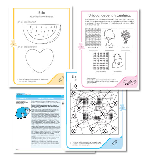 espacio-temporal, sensopercepción, conocimiento de tamaños, colores, formas y números. Números del 1 al 5.